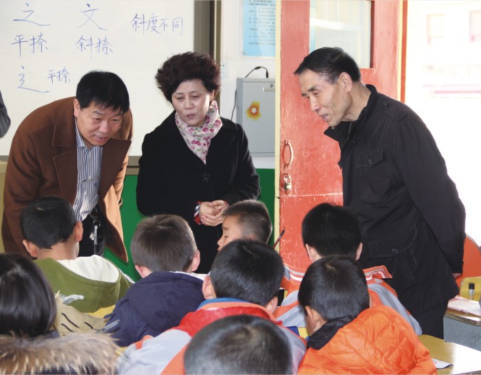 陕西柳范书画研究院院长王朝晖在书法教学培训示范学校耀州区塔坡小学调研,与